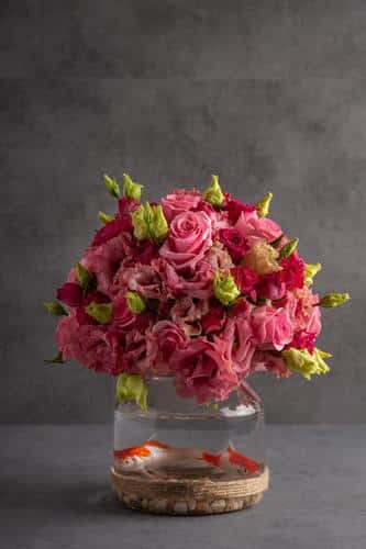 THE VASE BEAUTIFUL FLOWERS WITH 2 FISH AND 1 FISH FOOD