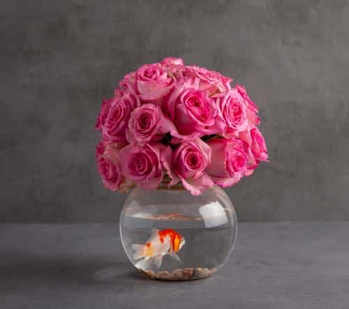 THE VASE FISH BEAUTIFUL ROSES WITH 1 FISH AND 1 FISH FOOD
