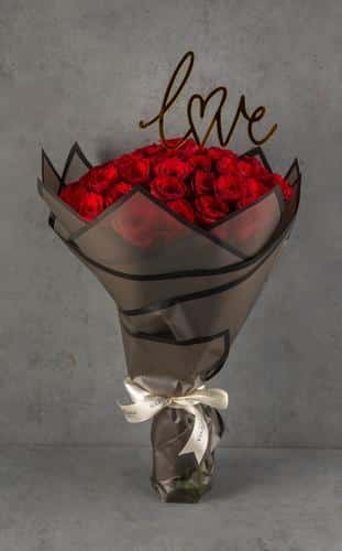 THE BOUQUET 50 RED ROSES WITH BLACK WRAPPING